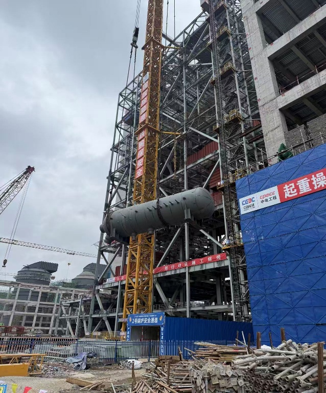 水城电厂项目2号汽轮机组0号高压加热器吊装顺利就位